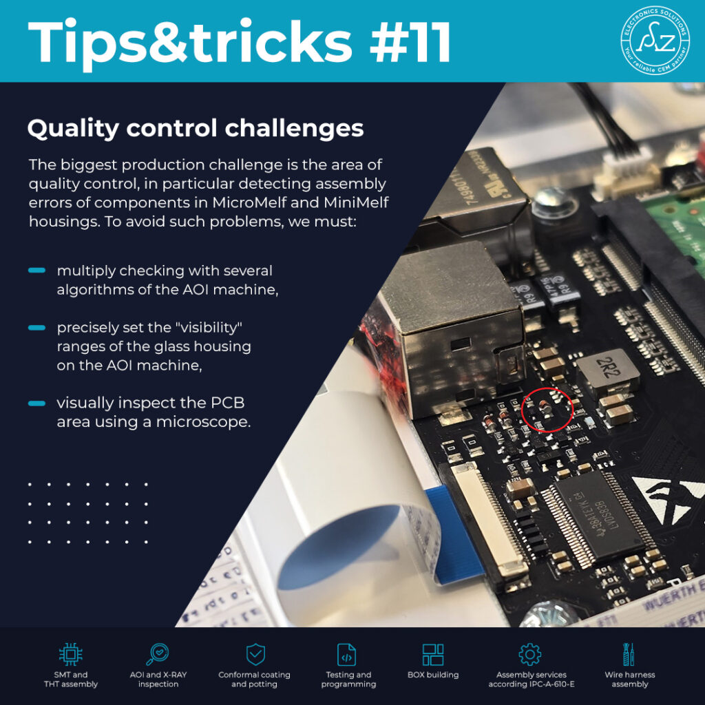 MicroMELF and MiniMELF housings, despite their small size, are often chosen for their precision parameters and stability in harsh conditions. However, their specific characteristics – including a glass, semi-transparent coating – pose a real challenge for optical inspection systems. This is why it is so important not only to calibrate the AOI properly, but also to combine several inspection methods – from advanced algorithms, through manual inspection, to the operator’s experience. High-quality assembly does not begin on the production line – it begins with an awareness of how difficult it is to spot an error with the naked eye.