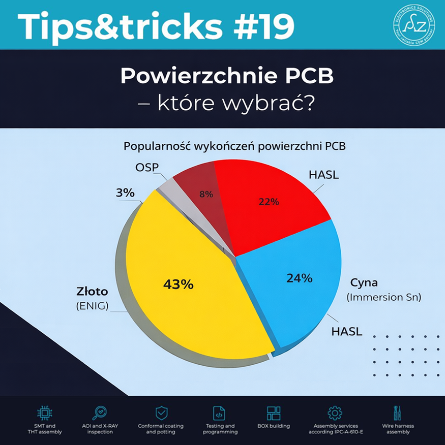 Dane rynkowe pokazują jasno – najczęściej wybieranym wykończeniem jest ENIG (ok. 43%).